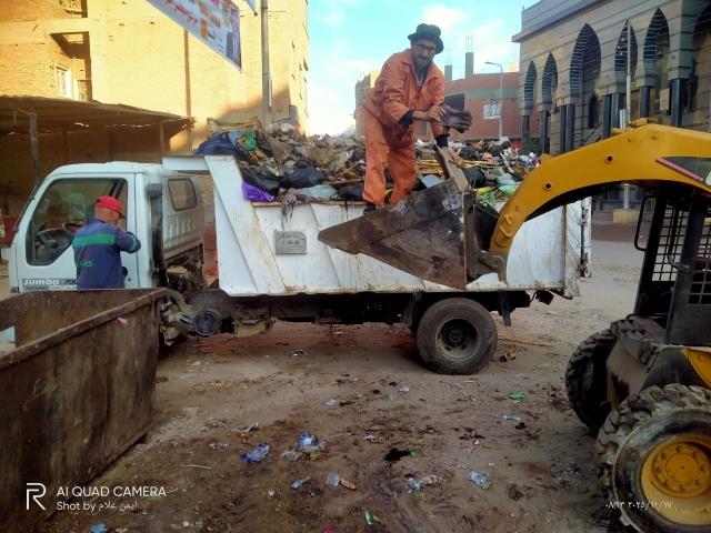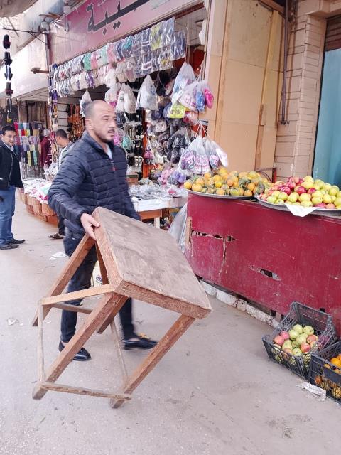 رفع كافة الإشغالات بالميدان وشارع المحطة وأمام مكتب البريد بالمدينة
