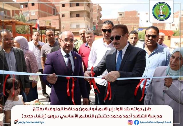 محافظ المنوفية يفتتح مدرستي الشهيد احمد حشيش ببروى والشهيد إسلام عبدالقوى بكفر القلشى خلال جولته بمركز ومدينة تلا |