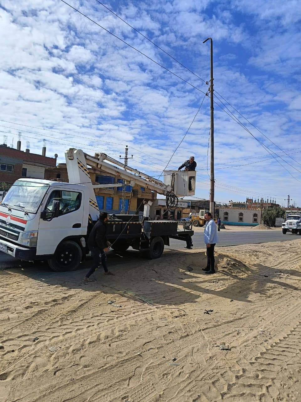 متابعة ميدانية لأعمال صيانة وإصلاح كشافات الإنارة والأسلاك بدائرة الوحدات المحلية بقري المركز