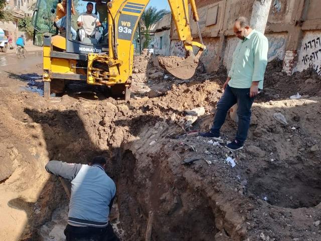 رئيس المدينة صيانة فورية وتواجد مسئولي المياه لخط مياه عزبة السعدنى بزناره